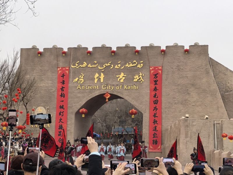 2月17日,游客在观看喀什古城开城仪式。新华社记者 蔡国栋 摄