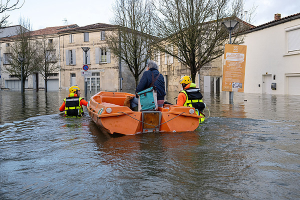 降水落在含水量已饱和的土壤上,在法国大部分地区引发洪涝灾害。较大到特大洪水过程目前仍在影响法国西部地区,威胁人员与财产安全。法国气象局数据显示,目前法国仍有三个省处于洪水红色预警状态,两个省处于橙色预警状态。