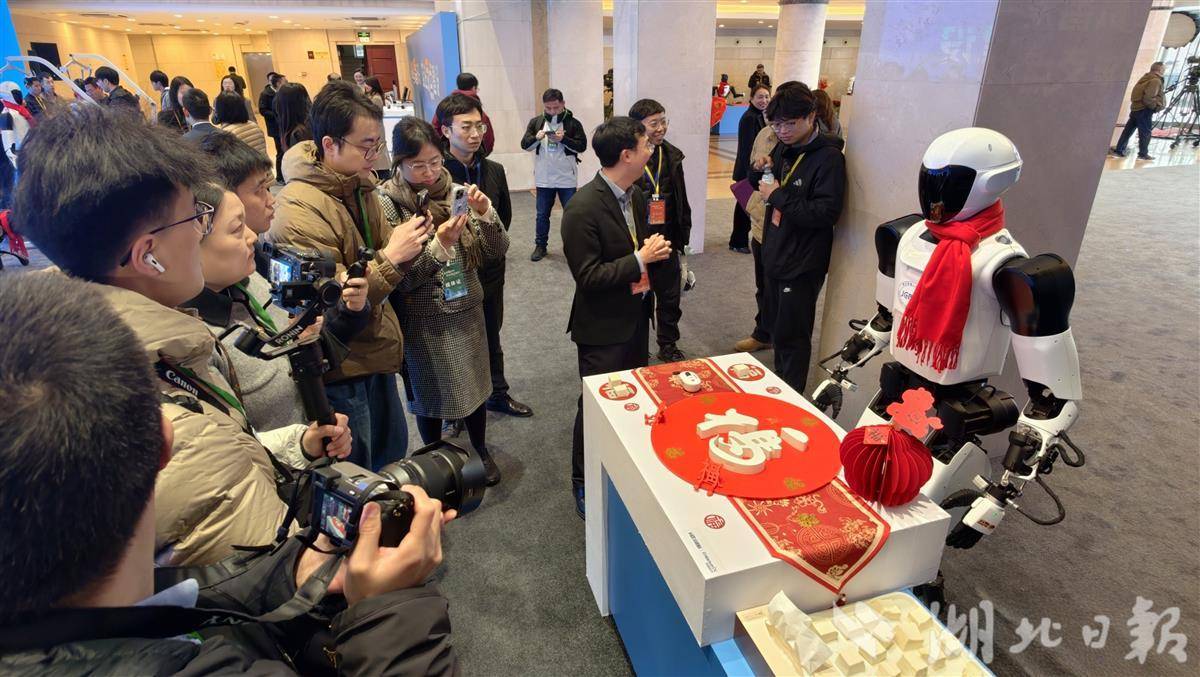2月24日,湖北召开加快建成中部崛起重要战略支点推进大会,多款人形机器人集中亮相“新春第一会”。它们既能写书法、踢足球,又能精准抓握豆腐等易碎物,还能实现触觉嗅觉感知。据了解,部分型号机器人已应用于工厂搬运、物料分拣、电力巡检等场景,实现了从实验室技术到产业实践的突破。(湖北日报全媒记者 陈少哲 摄)