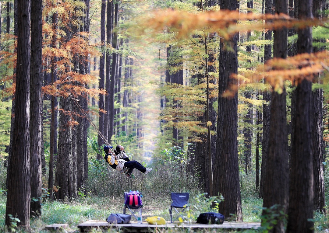 游客在太子山国家森林公园游玩。(视界网 赵平 摄)