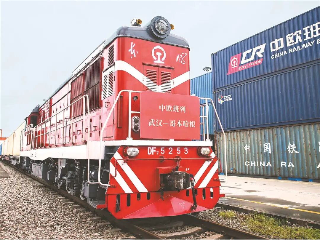 2026年1月,中欧班列(武汉)从中铁联集武汉中心站启程,开往丹麦首都哥本哈根。(通讯员供图)