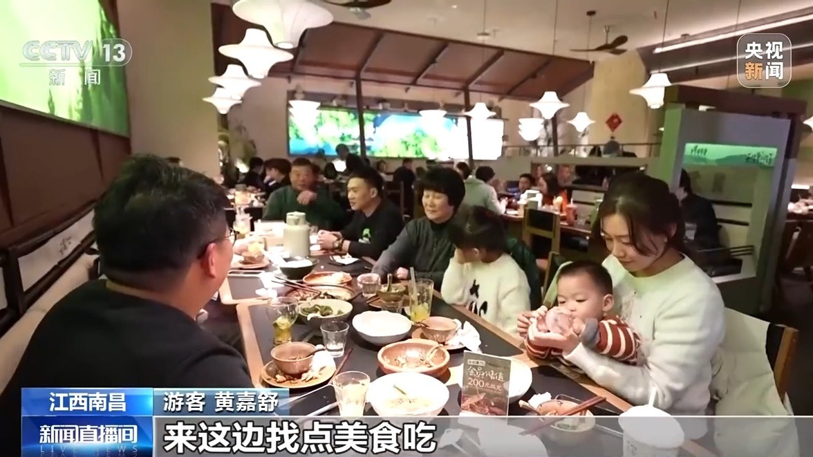 春节期间,在江西各大商圈里,每逢影片散场,不少观众就会选择在商圈内就餐。为此,商家及时优化服务、推出节日特色套餐,满足激增的客流。
