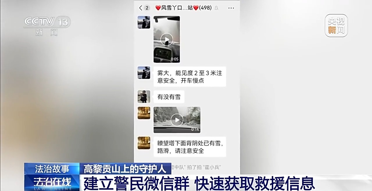 一次次在恶劣天气里争分夺秒开展救援,让大家意识到,被动救援不如主动预防。为此,民警们专门建立了“风雪丫口暖心驿站”的微信群 ,经常过往的群众以及护边员、网格员都在群里,路况实时共享、即时传递,一旦遇到突发情况,可以在群内第一时间同步,让警方能够及时掌握群众的求助信息。