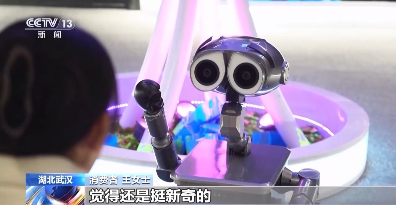 消费者 王女士:门口的机器人它穿着财神的衣服,很符合我们新年的一个气氛,和机器人互动,感觉还是挺新奇的。