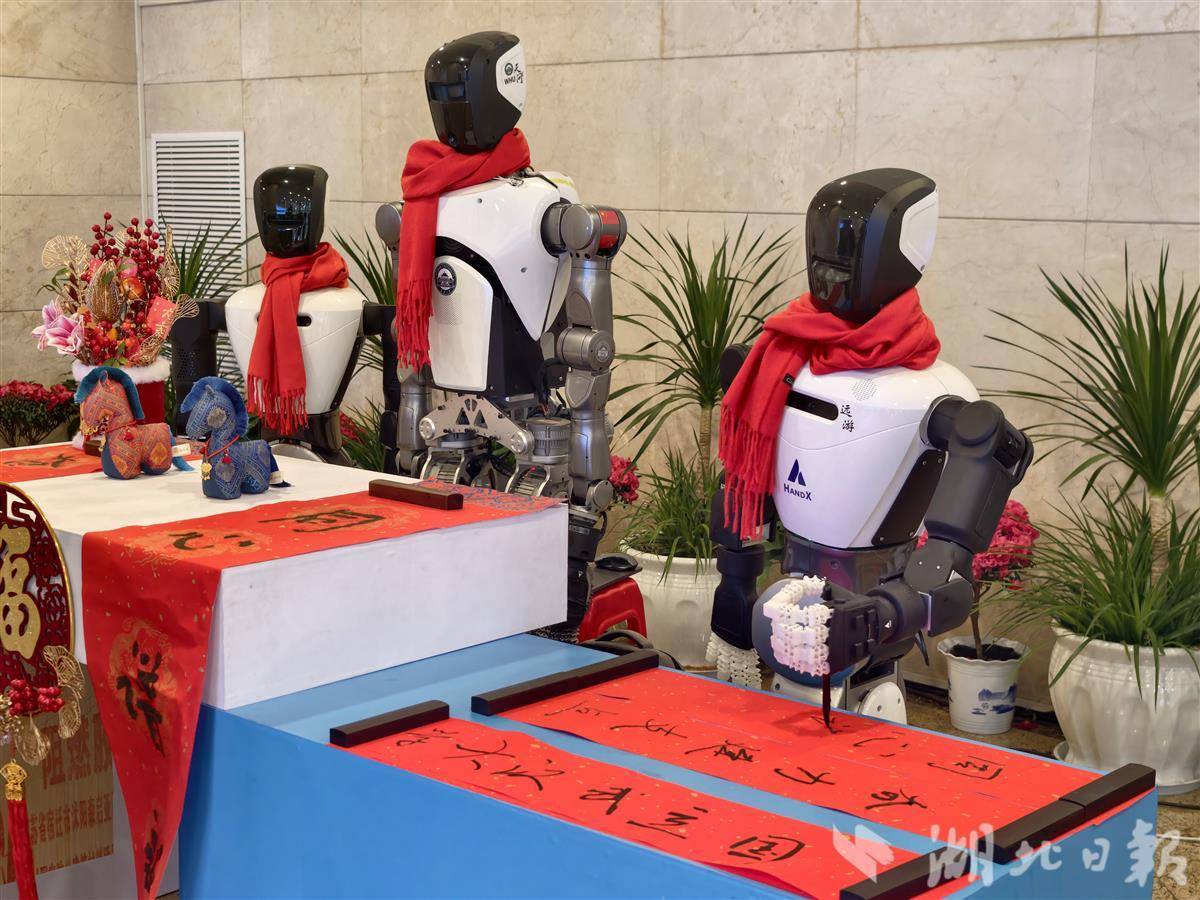 天问团队的远游机器人书写春联。(湖北日报全媒记者陈少哲摄)