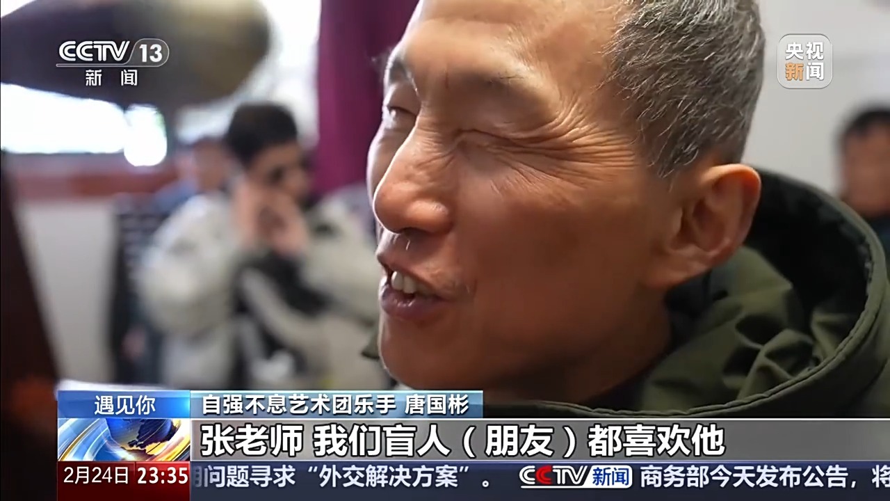 自强不息艺术团乐手 唐国彬:张老师,我们盲人朋友都喜欢他。