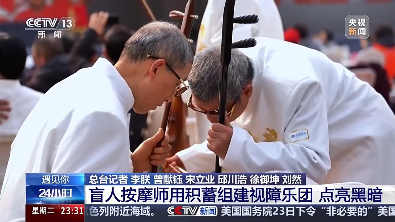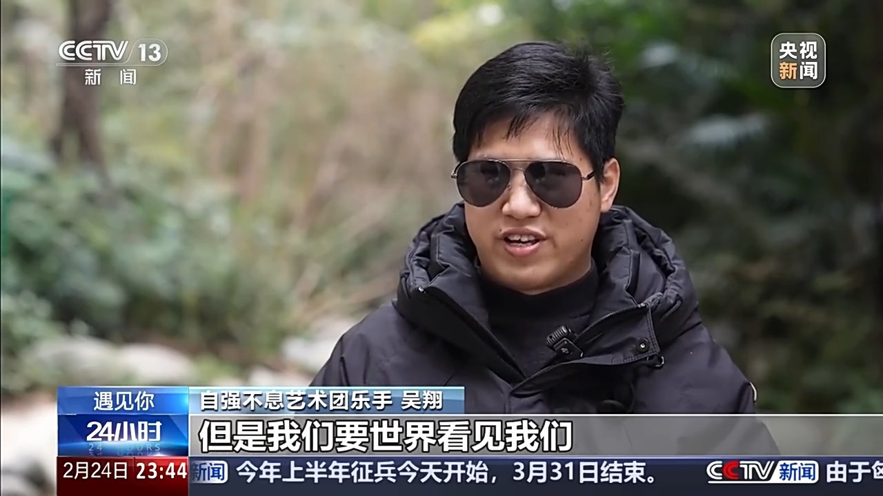 自强不息艺术团乐手 吴翔:我是一名竹笛手和二胡手,他们经常给我起的外号说我是我们乐团的“红花”,他们是我的“绿叶”。我经常都在笑,我说要是这朵“红花”没有了“绿叶”,它一样就不是一朵花。可能是我给他们带来了帮助,他们也给我带来了更多的爱。