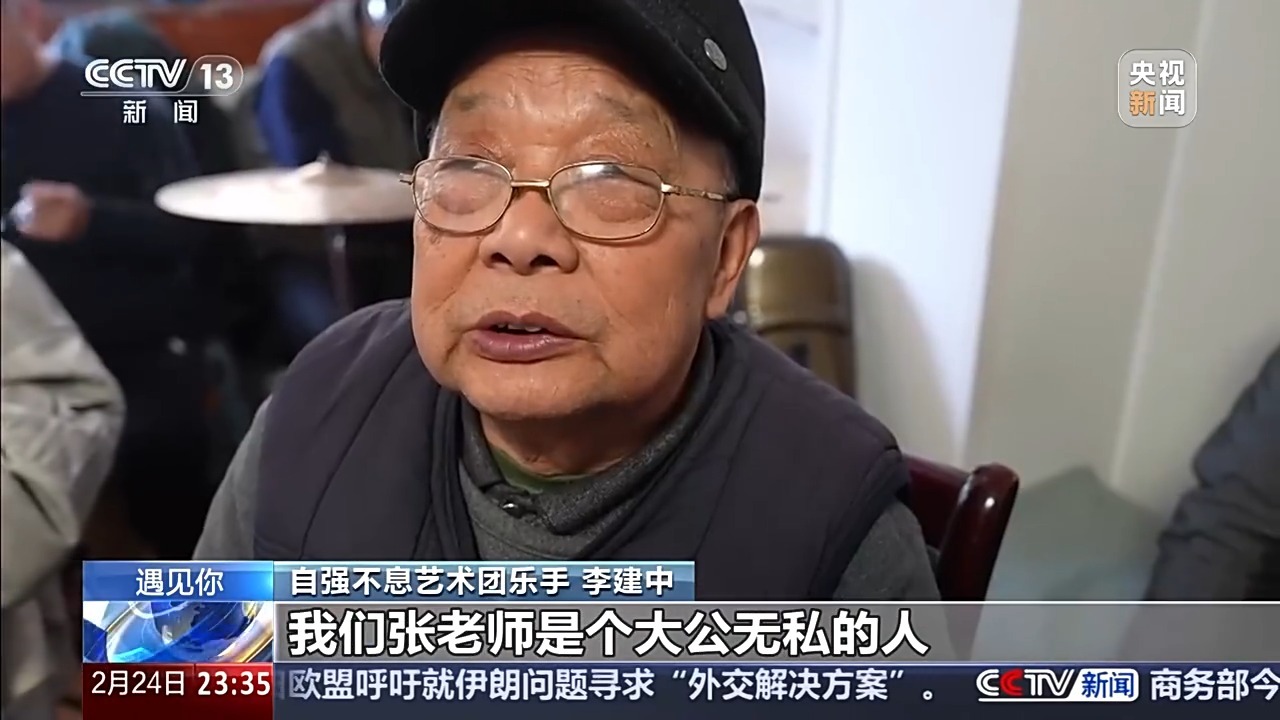 自强不息艺术团乐手 李建中:我们张老师是个大公无私的人。