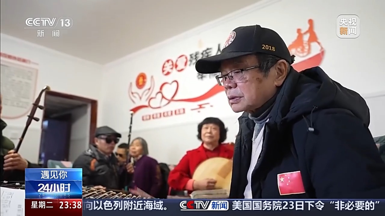 张世维介绍说,他们这个乐团里,其实也不都是七十多岁的老人,还有一位90后,今年33岁的视障乐手吴翔,被大家亲切地叫作乐队里的一枝红花。此外,他们目前还有7位视力正常的成员,比如现在的指挥兼扬琴手林大元。