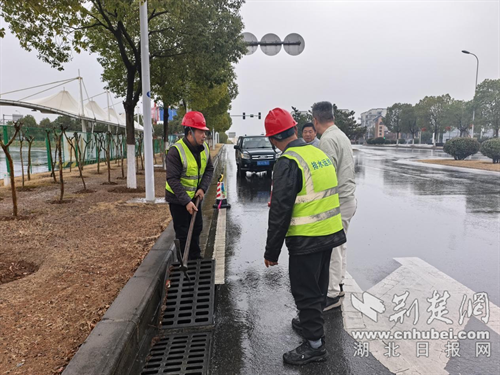工作人员对街道排水系统进行检查维护。通讯员 供图