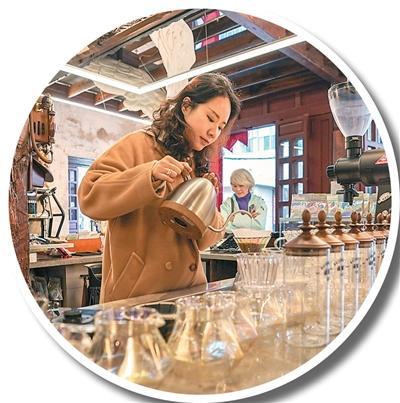 在云南省昆明市翠湖边的一家咖啡馆里,工作人员正在为客人制作咖啡。 新华社记者 彭奕凯摄