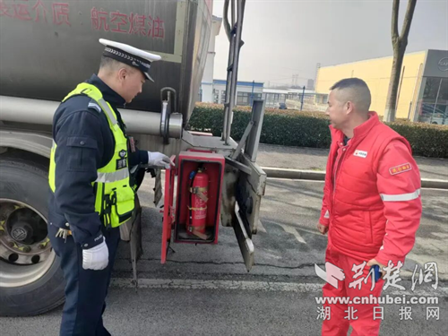 荆门交警在杨家桥执法服务站开展春运安全检查。通讯员 供图