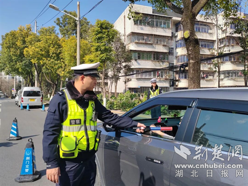 荆门交警在天鹅路开展酒驾专项整治行动。通讯员 供图