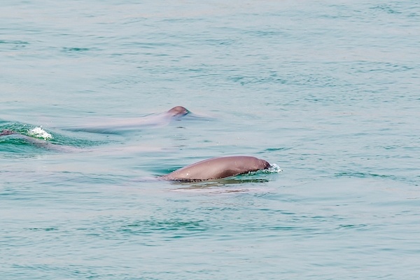 杨河拍到的江豚,其中一只腹部明显隆起