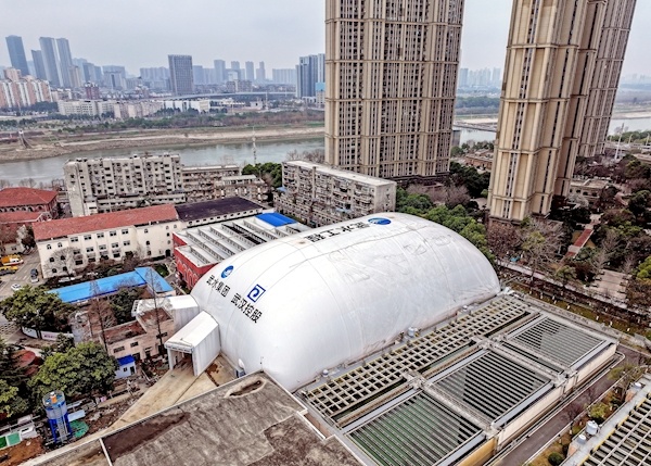 宗关水厂升级改造项目工地,紧邻净化水池、居民小区和1909年建成的武汉第一座自来水厂博物馆,因这些特殊原因,要求施工方“施工不见尘、作业不闻声”。街道综合执法中心队长李兵兵说,经宗关街道办事处及街道综合执法中心的建议后,施工方选定了气膜结构。2月10日,气膜结构安装到位。传统露天拆除作业的粉尘扩散、噪音污染、天气制约等问题迎刃而解,实现了在不影响水厂正常供水、不破坏水源地生态的前提下,实现了拆除作业的安全、洁净、高效推进。