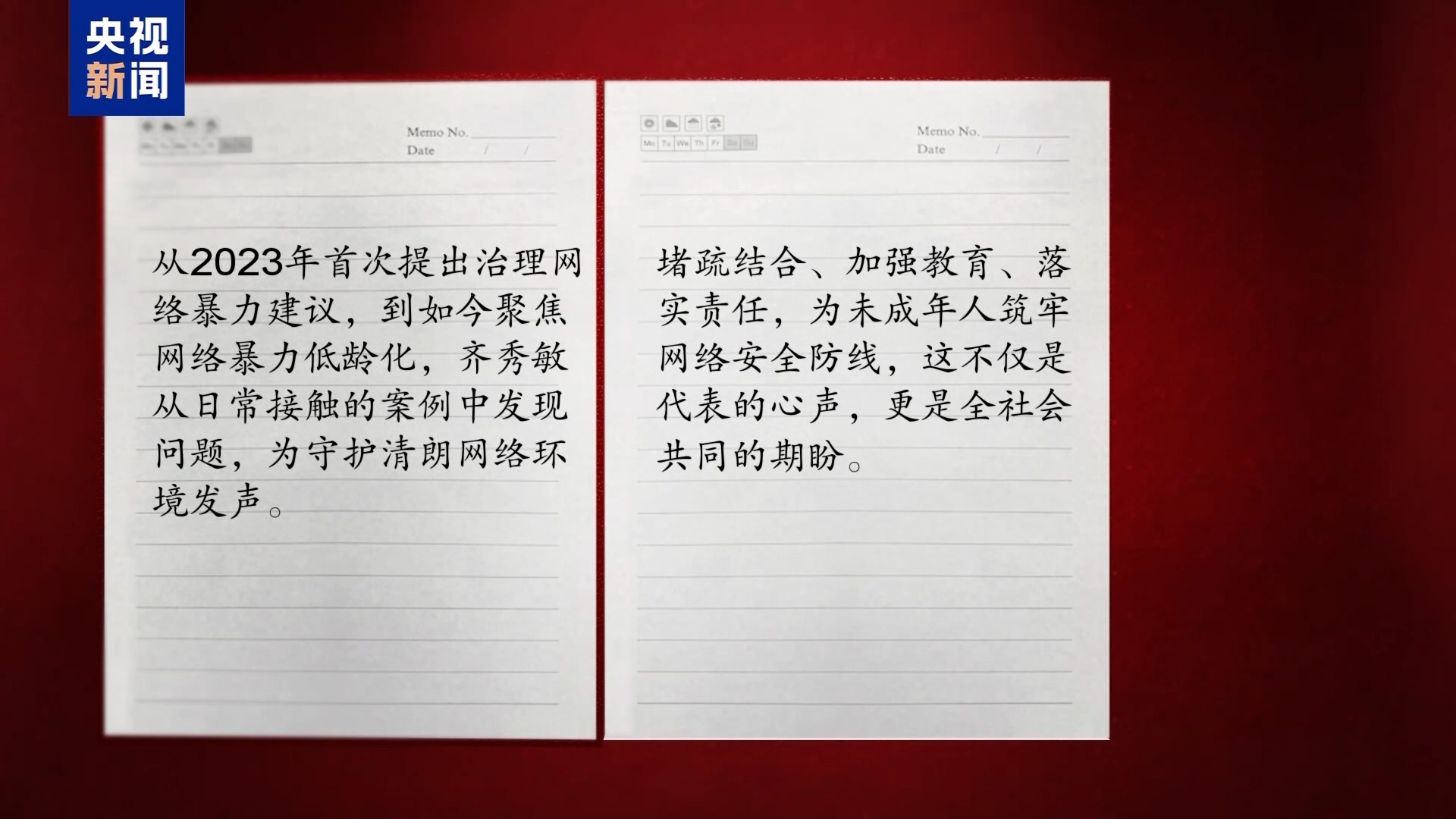 从2023年首次提出治理网络暴力建议,到如今聚焦网络暴力低龄化,齐秀敏从日常接触的案例中发现问题,为守护清朗网络环境发声。堵疏结合、加强教育、落实责任,为未成年人筑牢网络安全防线,这不仅是代表的心声,更是全社会共同的期盼。