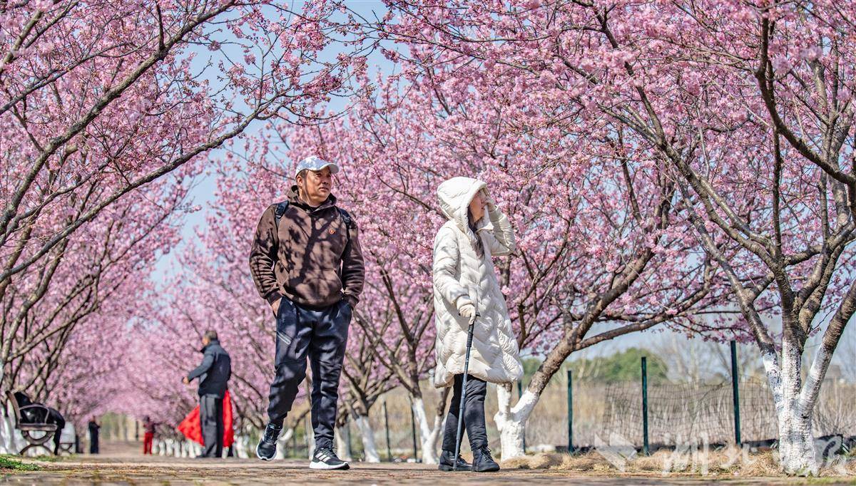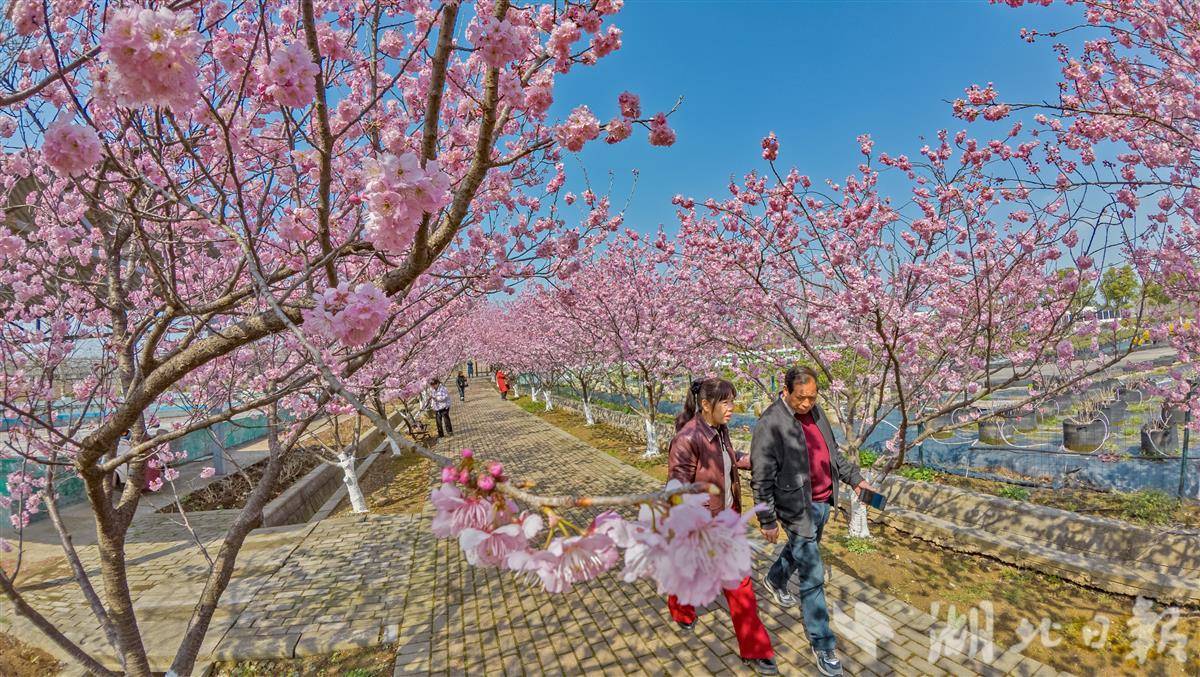 气温回暖,春意渐浓,枝江市问安镇同心花海樱花悄然绽放,迎来早春赏花高峰。(湖北日报全媒记者 刘曙松 摄)