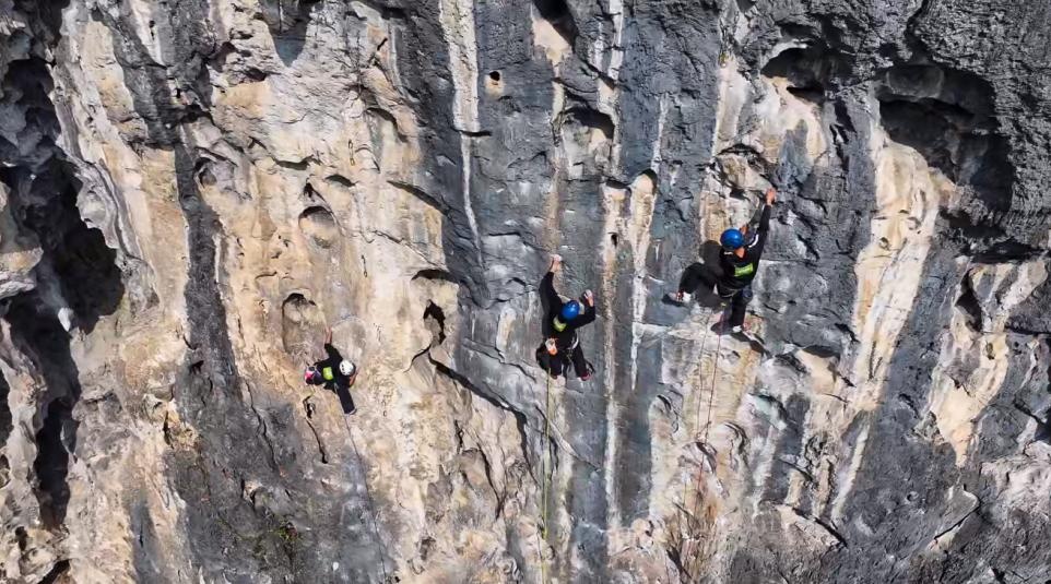 在阳朔攀岩节,参赛选手在进行岩壁挑战(央广网发 阳朔县融媒体中心供图)