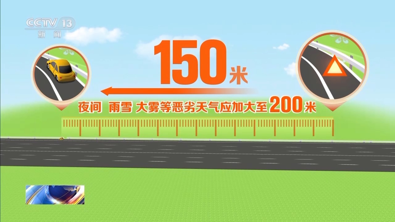 需要提醒的是,在高速公路发生事故或车辆故障时,三角警告牌应摆放在来车方向150米外;若在夜间或遇雨雪、大雾等恶劣天气,摆放距离应加大至200米。