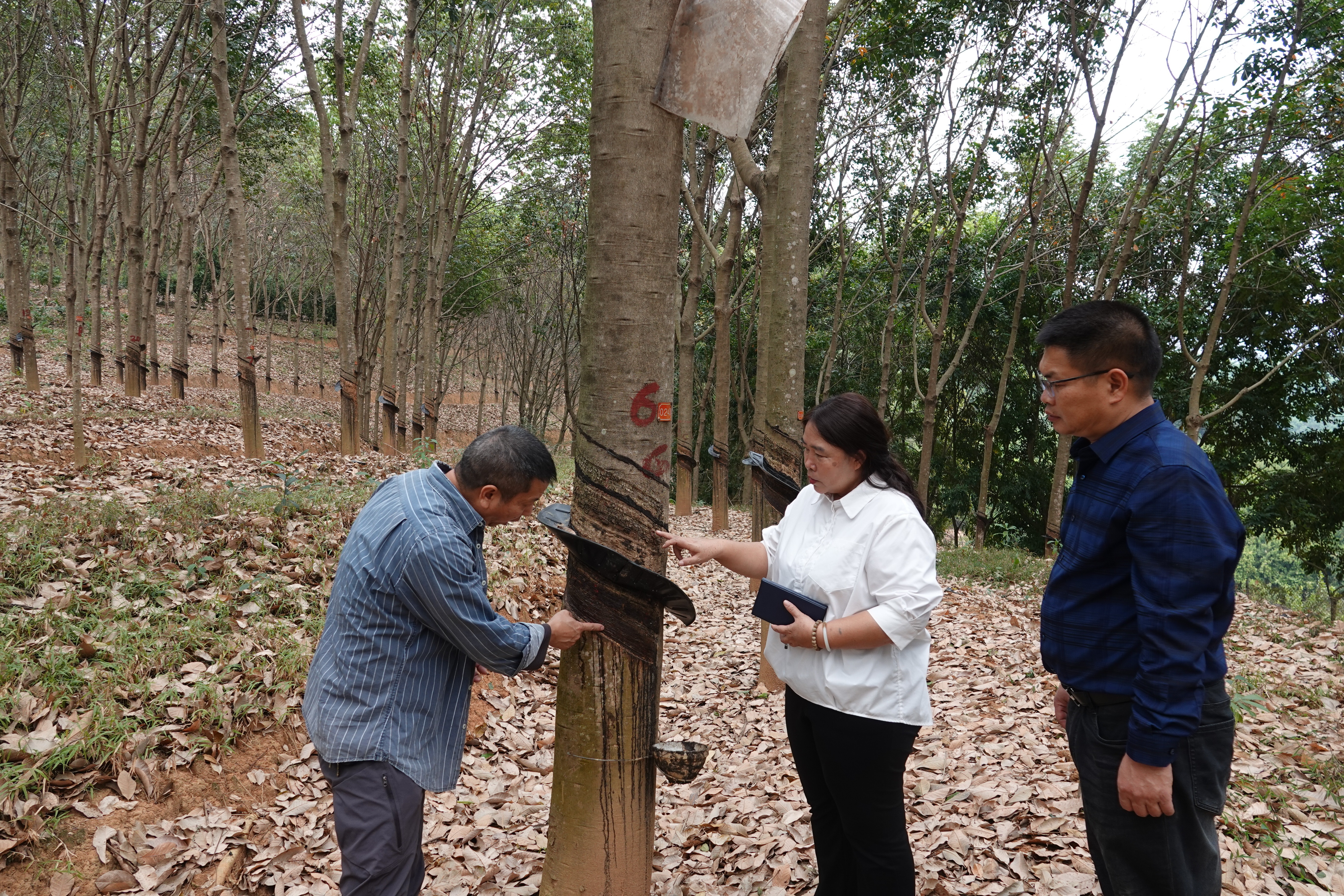 2025年初,她深入植胶县市调研,走到田间地头,听胶农和企业家的心里话。一句“胶价上不去,成本降不下”的叹息,让她至今难忘。调研中她发现,胶价低迷已导致100多万亩胶园被弃管,300多万亩老旧胶园亟待更新,科技和政策支持的短板更让产业雪上加霜。