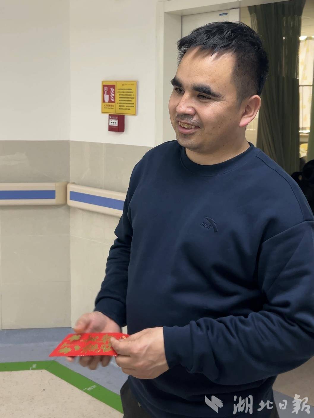 湖北日报讯(记者龙华、汪菁华)“我今天只带了一小部分的婴儿帽和婴儿鞋,如果你喜欢的话,我再给你送来。这些都是当初给自家孩子准备的,但没用上的。”2月27日12时30分,武汉大学中南医院妇产科病房门口,家住武昌的陈女士为刚诞下五胞胎的新疆家庭送上了一份温暖。15分钟后,一位不愿透露姓名的男士也赶到现场,将印有“新年快乐”的红包,亲手递到新生儿父亲乌吉阿卜杜拉·艾海提手中,祝福五个宝宝在马年茁壮成长。