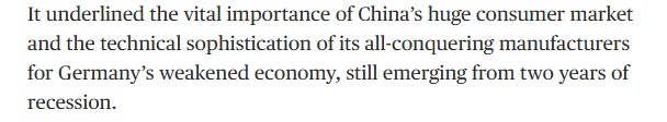 报道强调,默茨此访凸显出中国庞大的消费市场对于德国经济的重要性,同时也表明中国极具竞争力的先进技术对德国疲弱的经济复苏至关重要。