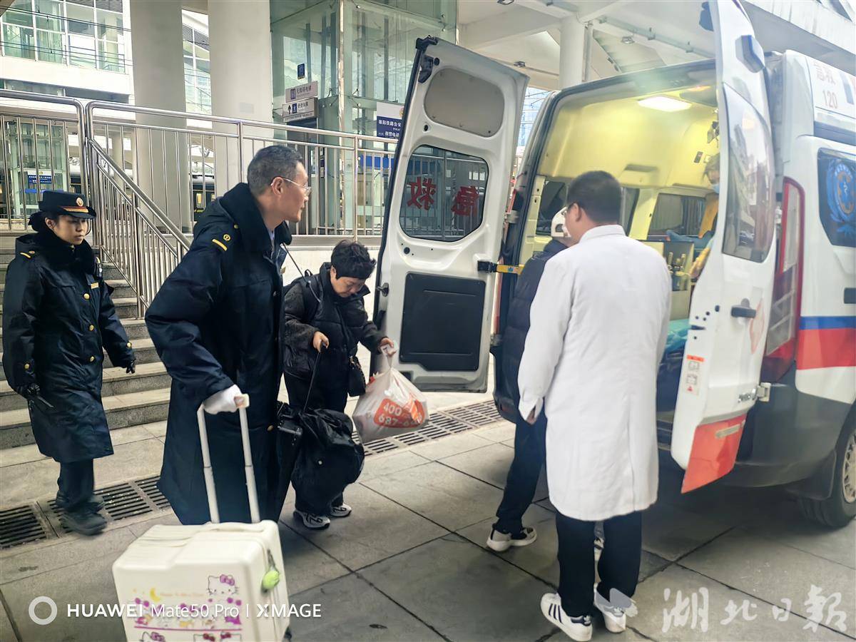 十堰火车站客运值班站长赵子劢接到紧急通知后,立即启动应急处置预案,第一时间联系十堰市太和医院,安排救护车赶赴车站等候,并开辟了方便病人乘降的绿色通道。下午5时49分,列车在1站台停妥后,站车联手将病人送上救护车。下午5时52分,K4738次列车驶离十堰火车站。