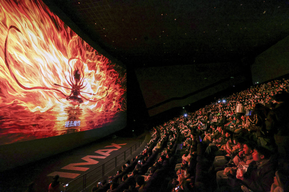 2025年2月25日,观众在贵州贵阳越界影城观看电影《哪吒之魔童闹海》。