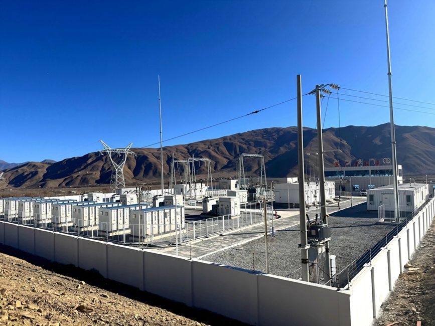 西藏自治区山南市扎囊县扎其乡罗堆村50兆瓦光伏治沙示范项目现场,电网设施有序运行,绿电由此输送四方。人民网记者 吴雨仁摄