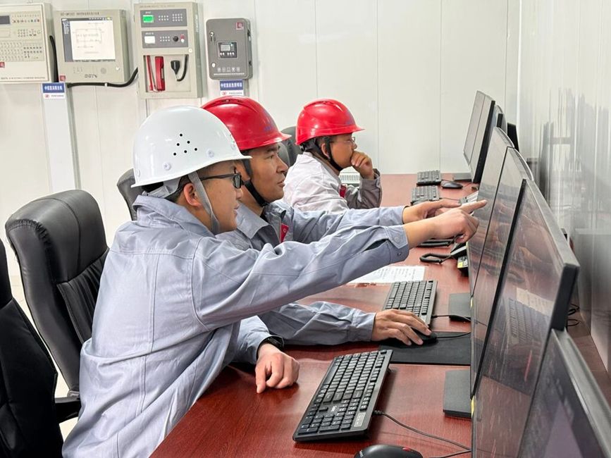 在项目控制室内,技术人员实时监测光伏矩阵的运行数据与发电情况。人民网记者 吴雨仁摄