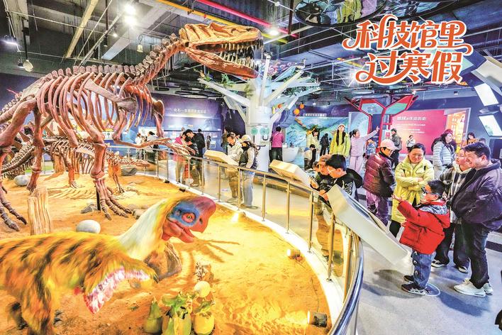 2月27日,武汉科技馆一台机器人忙着与几名小朋友同时下围棋、走象棋,小朋友们大呼有趣;戴着VR眼镜“抚摸恐龙”,小朋友感觉好奇妙。寒假期间,小朋友们在家长的陪同下来到武汉科技馆参观并体验趣味科普活动,感受科技的魅力与乐趣,丰富假期生活。楚天都市报极目新闻记者李辉 通讯员谭琛摄影报道