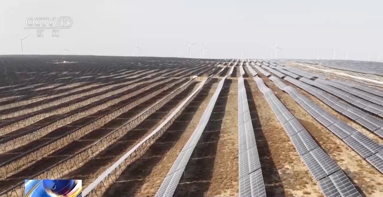 总台央视记者 古峻岭:这里是位于宁夏的国能灵武光伏电站。它占地约12万亩、相当于11000多个标准足球场大小。此刻,这片光伏蓝海里的700多万块光伏板正沐浴着阳光,源源不断地捕捉着太阳能。很难想象,这片充满生机的光伏基地,曾经是一片荒芜的采煤沉陷区。如今,曾经光秃秃的荒地,已经被整齐排布的光伏阵列全面覆盖。这样一来不仅可以提供大量的清洁能源,更让昔日的采煤沉陷区实现生态修复、绿色转型,真正做到了生态效益与能源效益双赢。