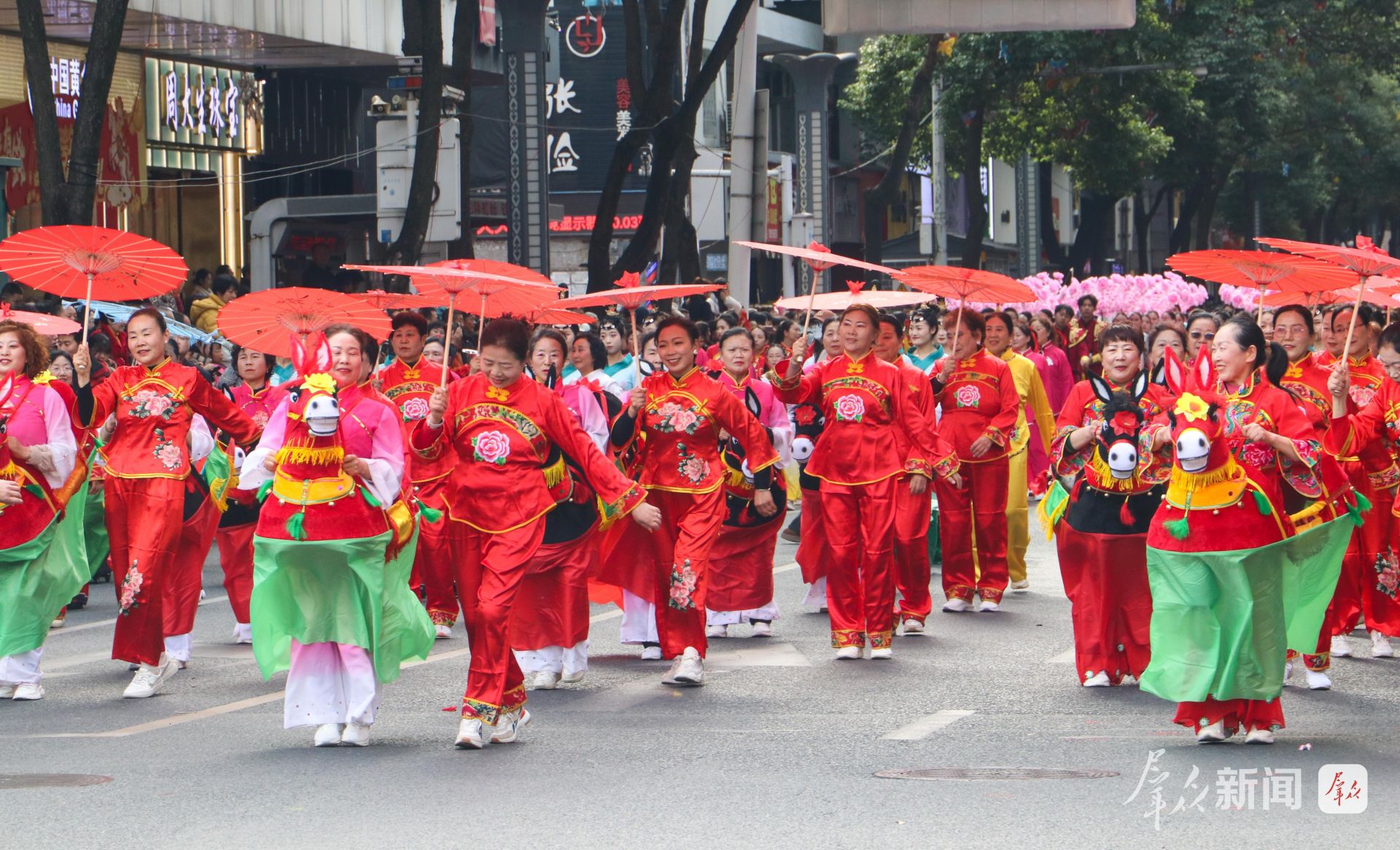 舞龙的汉子们擎着金龙狂奔腾跃,龙身随着绣球翻飞,在阳光下划出道道弧线;踩高跷的艺人足蹬三尺木跷,时而扭起秧歌步,时而俯身与路边孩童击掌;彩莲船的“船娘子”碎步轻移,艄公手握船桨在前逗趣,一唱一和间,汉江边的渔家风情跃然眼前……社火队员们身着五彩斑斓的服饰,踩着鼓点旋转、跳跃,耍出新年精气神。