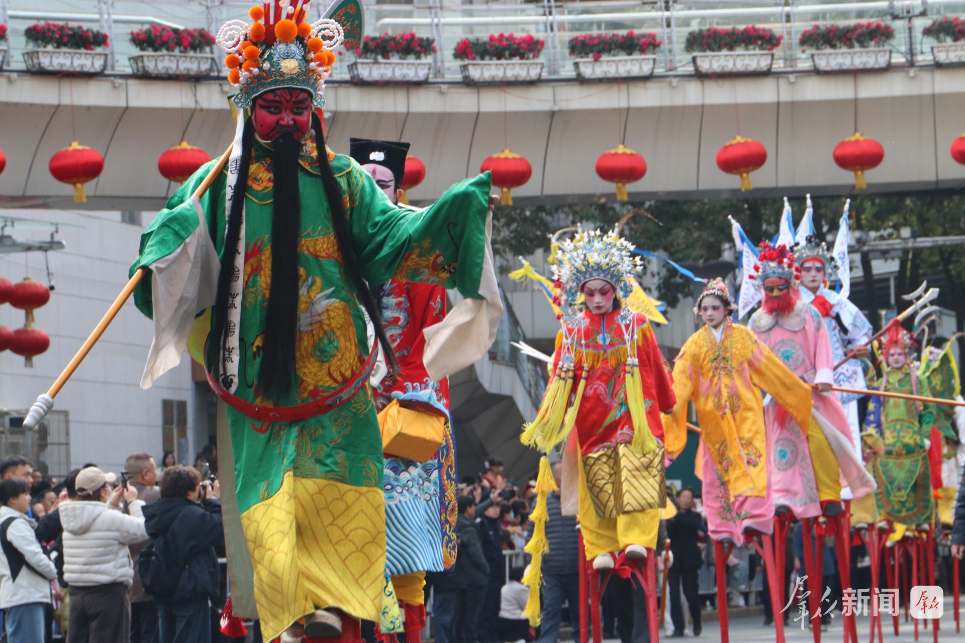 2月27日,演员在社火巡游中进行汉调二黄表演。