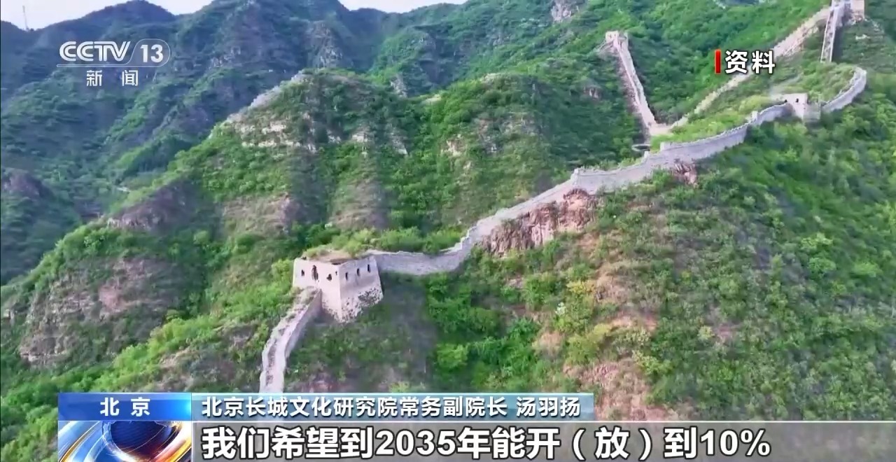 北京长城文化研究院常务副院长 汤羽扬:北京长城500多公里,目前开放的大概百分之五点几,大概只有二十几公里是作为景区开放。按照整体的长城文化带规划,我们希望到2035年能开放到10%,也就是能够开放五十几公里。