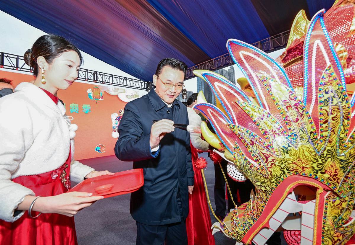 非遗城南龙灯吸引游人驻足。(湖北日报全媒记者 童军鹏 摄)