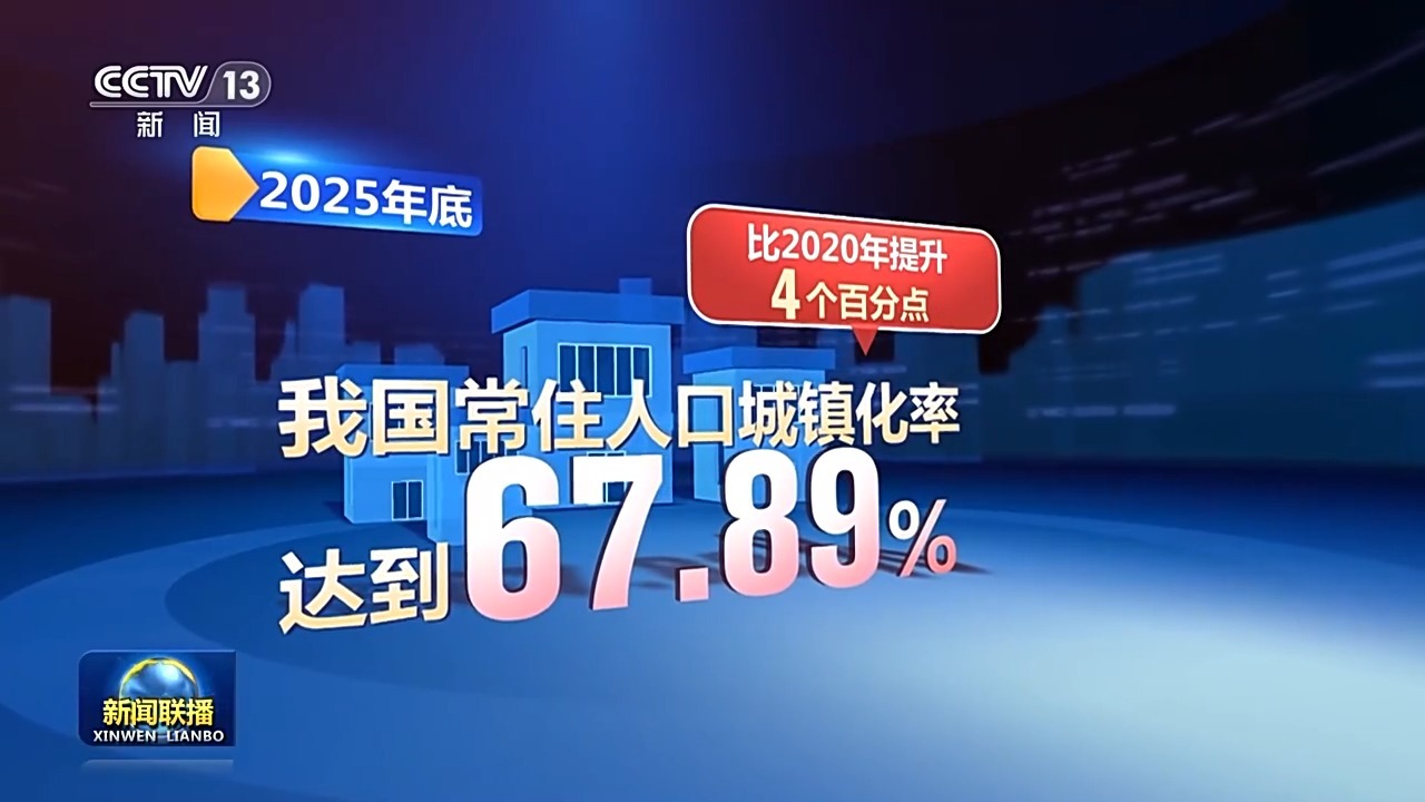 2025年底,我国常住人口城镇化率达到67.89%,比2020年提升4个百分点。