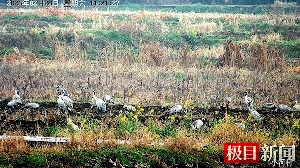 楚天都市报极目新闻讯(记者关前裕 通讯员余向京 李镇海)2月28日,湖北丹江口库区省级湿地自然保护区管理局在对郧阳区安阳片区进行视频巡护时,惊喜地发现50只国家二级保护动物灰鹤在此集结。这是丹江口库区湿地有监测记录以来,灰鹤种群数量最多的一次。