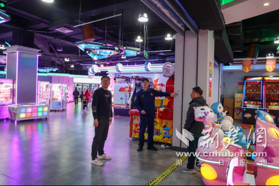 消防监督员对电玩城室内消防设施进行检查。魏欢欢 摄