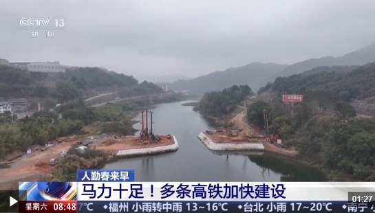 在新建温福高铁的建设现场,全线700多名建设者正以饱满的干劲投身施工一线。在位于福建福安的全线关键控制性工程——赛江特大桥施工现场,工人们正全力攻坚水中墩施工,多台旋挖机同步向水下花岗岩掘进。