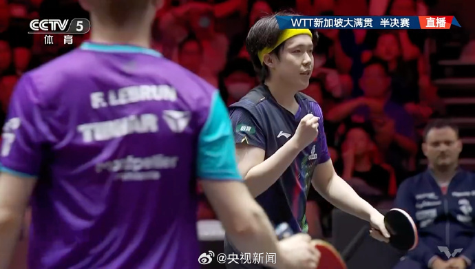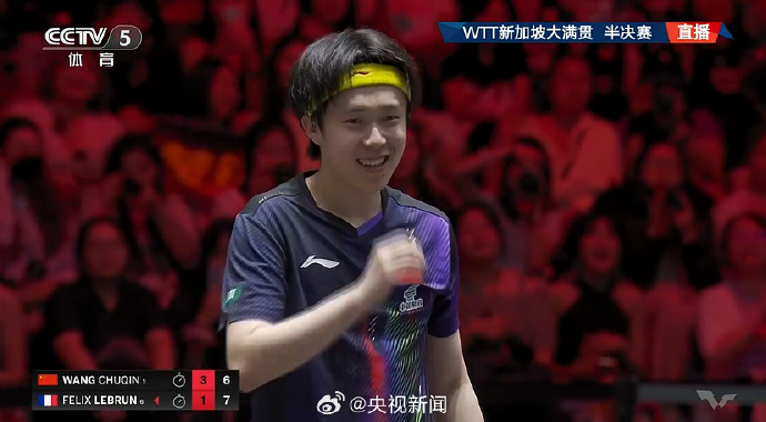 2026年WTT新加坡大满贯男单半决赛,中国选手王楚钦战胜对手费利克斯·勒布伦,晋级决赛。今晚,他将向冠军发起冲击,加油!