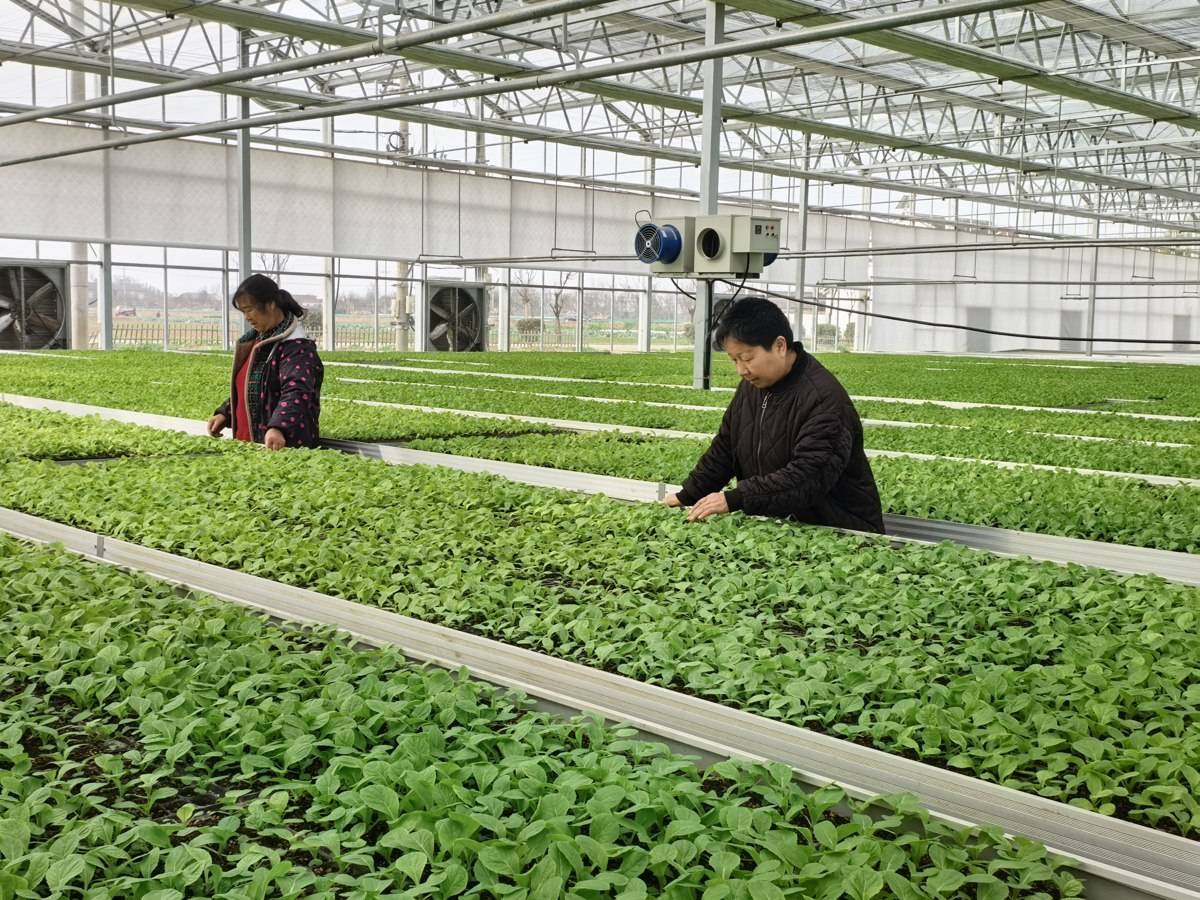 大屏幕上实时跳动着温室的温湿度数据,群益村党总支书记杜兴国走进大棚,盯着屏幕仔细查看数据。“正月初五就开工了,这一批白菜苗这两天就能移栽。”指着眼前的菜苗,他的语气里带着几分自豪,“这一茬就能栽约300亩菜地。”