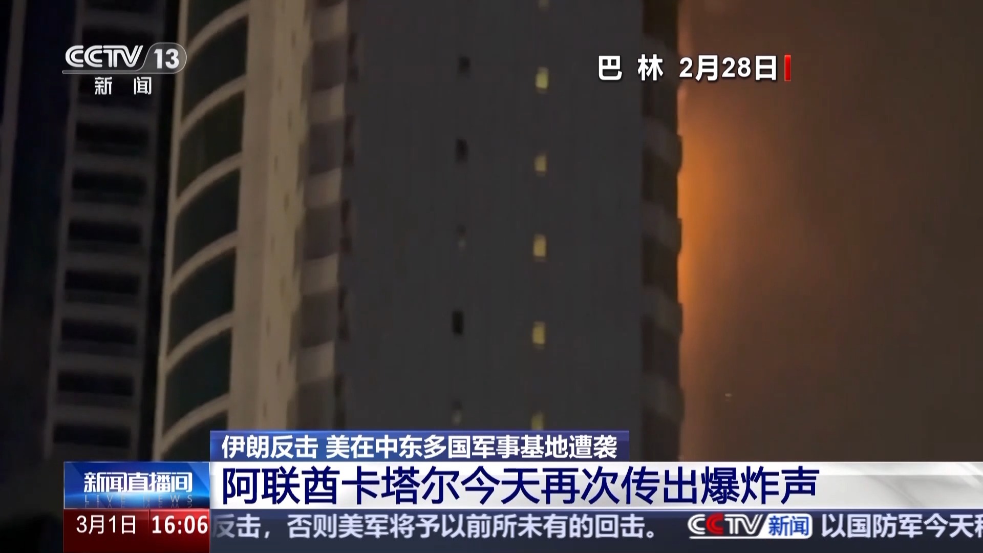 伊朗的反击目标还对准了美国在中东多国的军事基地。当地时间今天(3月1日)上午,阿联酋迪拜、卡塔尔多哈等地就再次传出爆炸声。