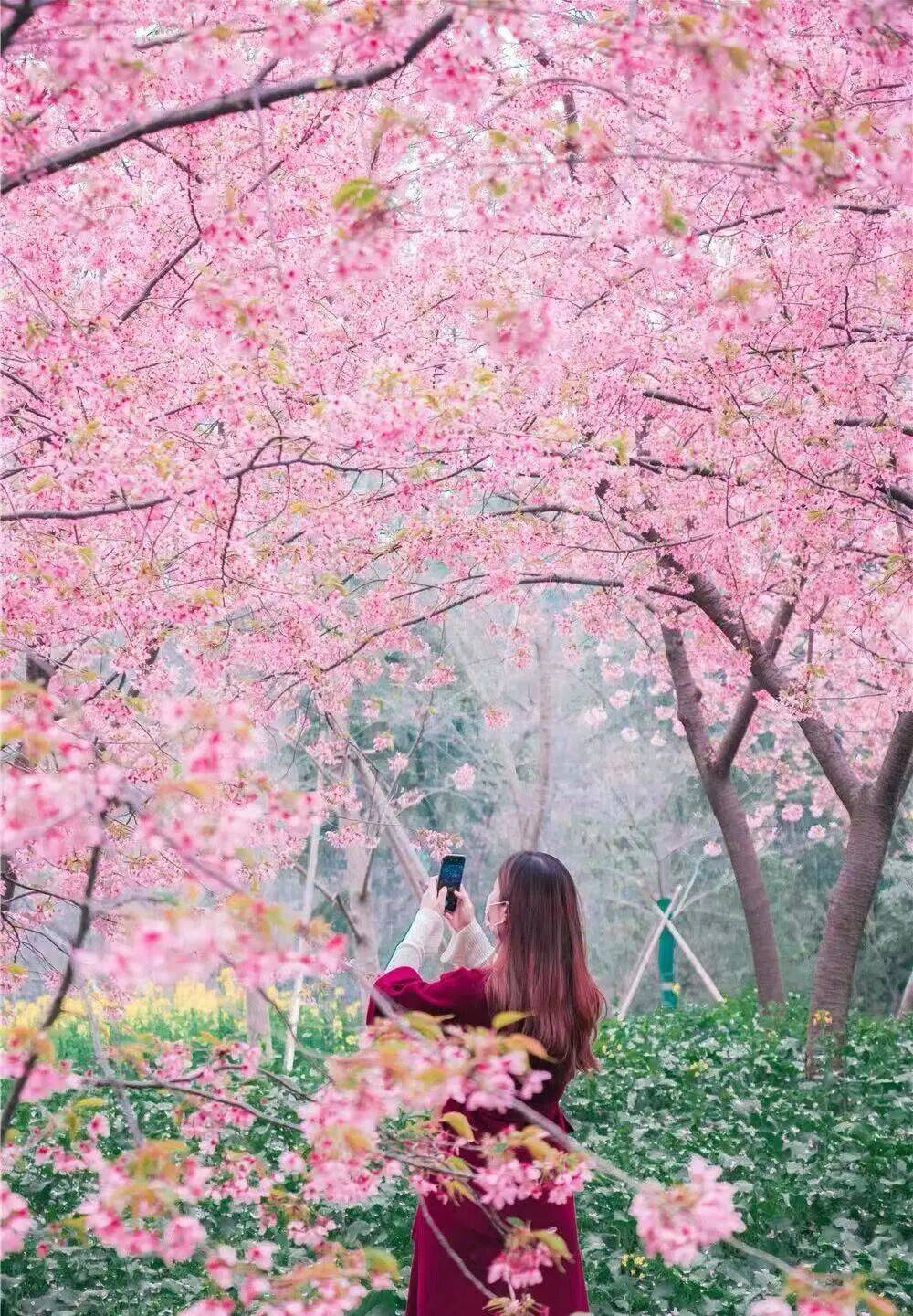3月初是椿寒樱的盛花期,紧接着就是牡丹樱,此时两种樱花同框,是打卡的最佳时机。今年这两种花都已提前开放。晴天清晨或午后,光线柔和,最适合赏花拍照。