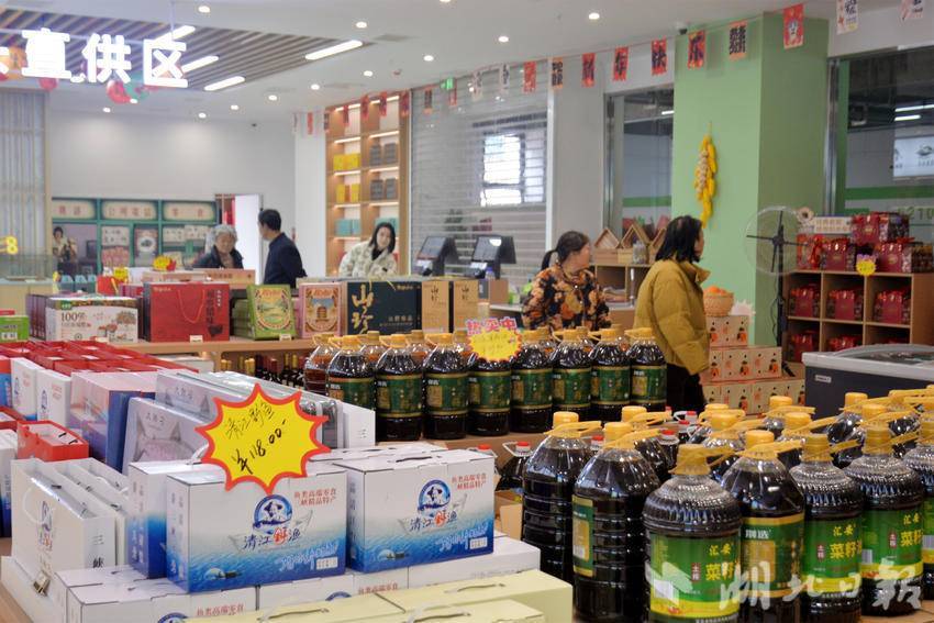 湖北日报客户端讯(通讯员张国荣)近日,在位于宜昌市夷陵区的夷陵三巷市场邻里中心二楼,由夷陵区供销社全资社属企业宜昌供集商贸有限公司运营的农特产品展销馆对外营业,吸引一些市民在展销馆选购物品。