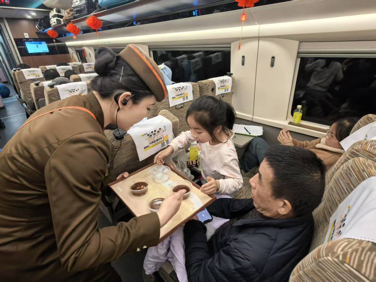 3月2日,正值元宵节前夕,由武汉客运段南线动车组车间担当值乘的G391次列车车厢内张灯结彩、暖意融融,列车乘务组精心策划“情暖高铁 喜乐元宵”主题庆祝活动。列车员们将传统民俗文化与暖心客运服务深度融合,与南来北往的旅客共庆佳节、共话团圆,为春日旅途增添了浓浓温情与别样年味。活动现场温馨热烈,欢声笑语充盈整个车厢。旅客们纷纷驻足参与互动,手持灯笼、福字与工作人员合影留念,用镜头定格高铁上的温馨瞬间。小朋友们捧着糖果、提着小灯笼欢呼雀跃,旅客们品尝着汤圆连连夸赞。车厢内其乐融融,处处洋溢着团圆与幸福的气息,不少旅客直言这是一次既难忘又暖心的旅途元宵体验。(湖北日报通讯员 周赟玥 任莹娇 摄)