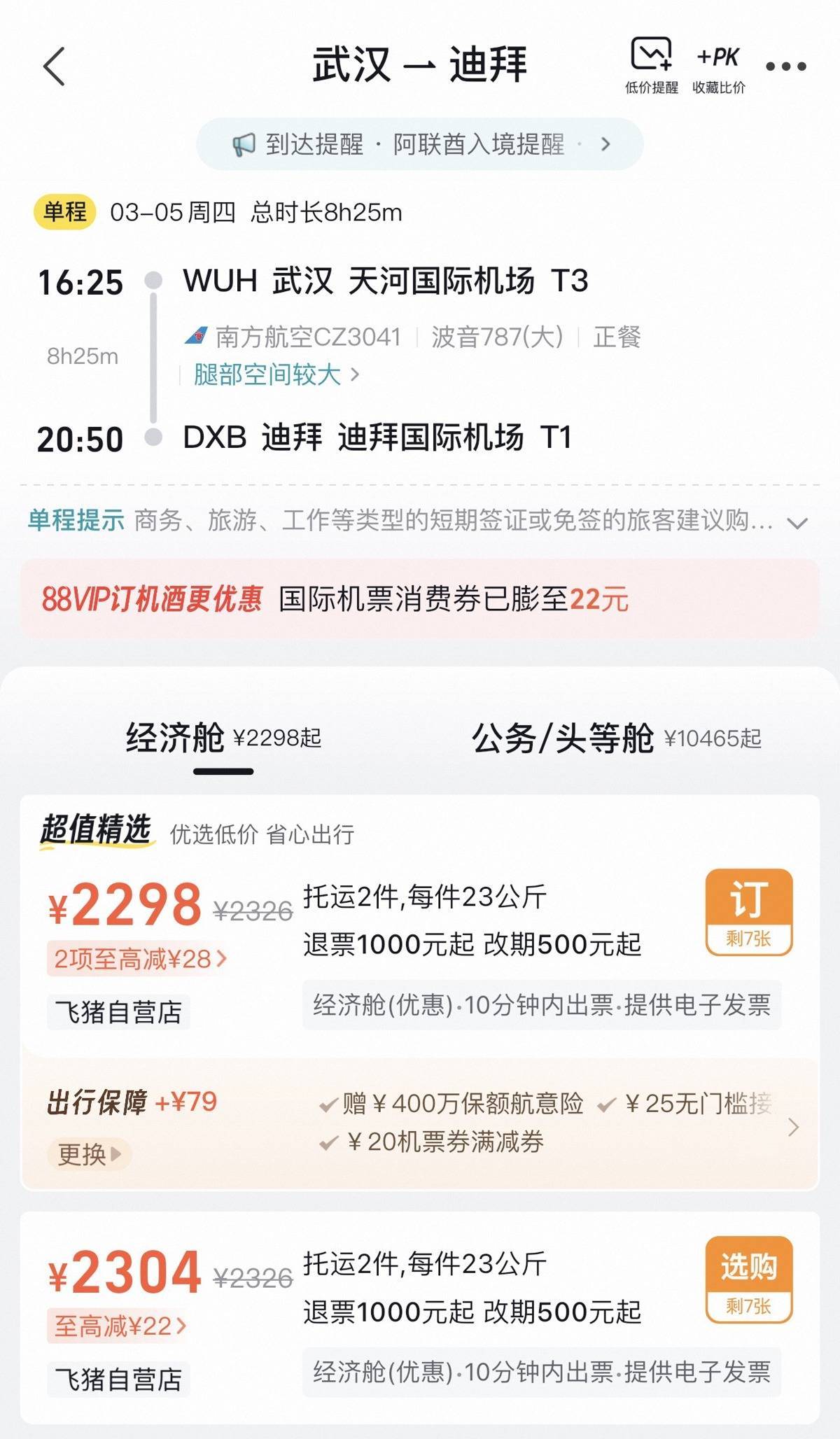 3月2日,旅客仍可购买3月5日武汉直飞迪拜的机票。