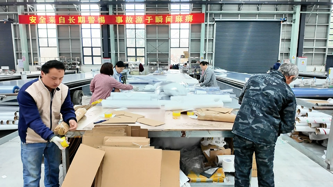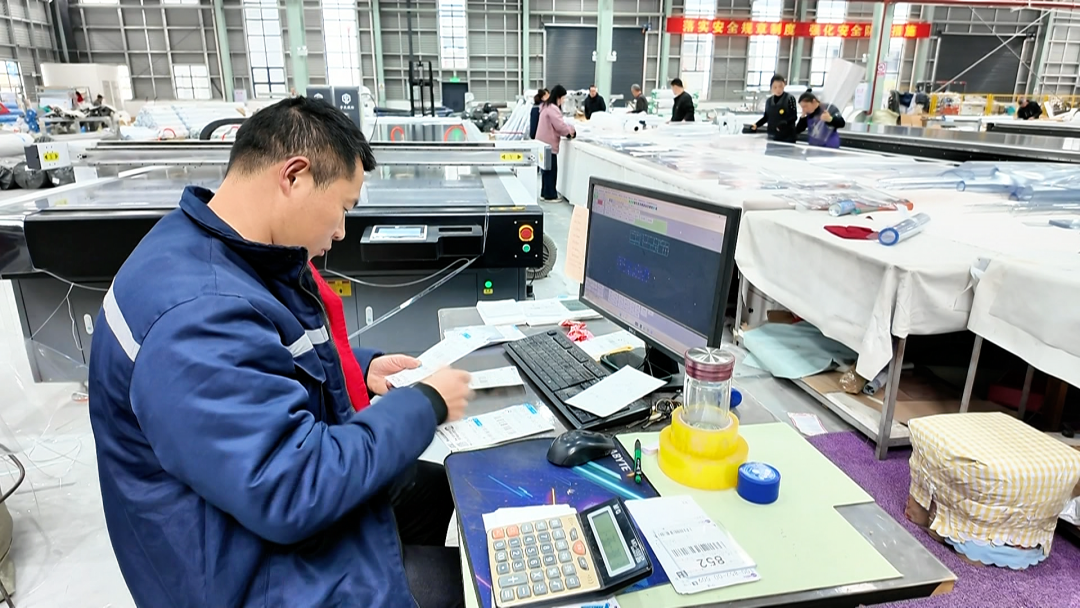 “我们正月初六就返岗上班,公司订单来自河南、河北、黑龙江等全国各地。我们根据客服提供的尺寸要求,通过CAD画图,数控裁剪后,由物流全部发出,最多两三天就能到客户手中,每天交付的单量在三四千单左右。”湖北众诺诚达科技有限公司数控裁剪师左强说。