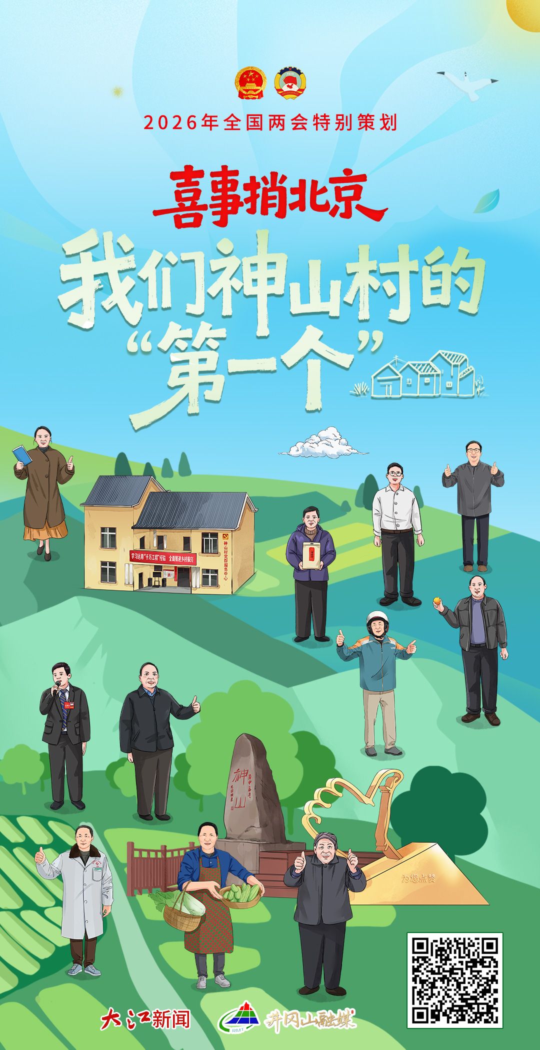 大江新闻讯 春风浩荡,山河焕新。2026年全国两会即将召开,大江新闻客户端联合井冈山市融媒体中心,推出全国两会特别策划《喜事捎北京丨我们神山村的“第一个”》。循着习近平总书记考察的足迹,我们以10个“第一个”的独特视角,采用手绘长卷H5和视频的形式,生动讲述神山村十年来牢记嘱托、感恩奋进的鲜活故事,立体呈现革命老区小山村从脱贫攻坚到乡村全面振兴的新图景。