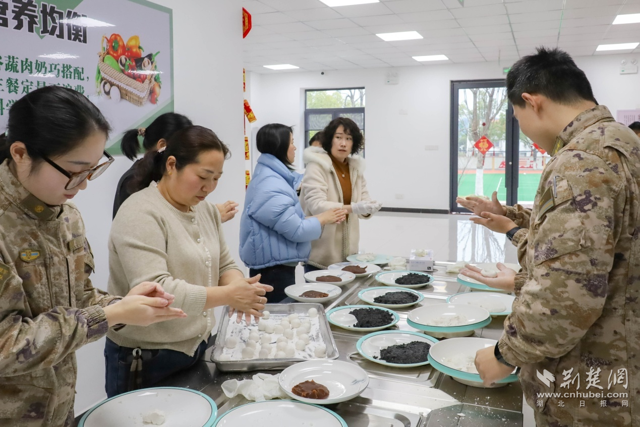 在搓汤圆环节,洁白的糯米粉在大家手中揉、搓、团、捏,很快就变成了一个个圆润饱满的汤圆。“每逢佳节倍思亲,现在搓着汤圆,就想起了老家母亲做的味道。” 年轻战士小李手里不停,眼中满是思念,“虽然不能回家团圆,但军营里的热闹和温暖,让我们感受到了家的味道。” 官兵们纷纷表示,在军营里和地方同志一起过节,不仅缓解了思乡之情,更感受到了江夏人民的深情厚谊。